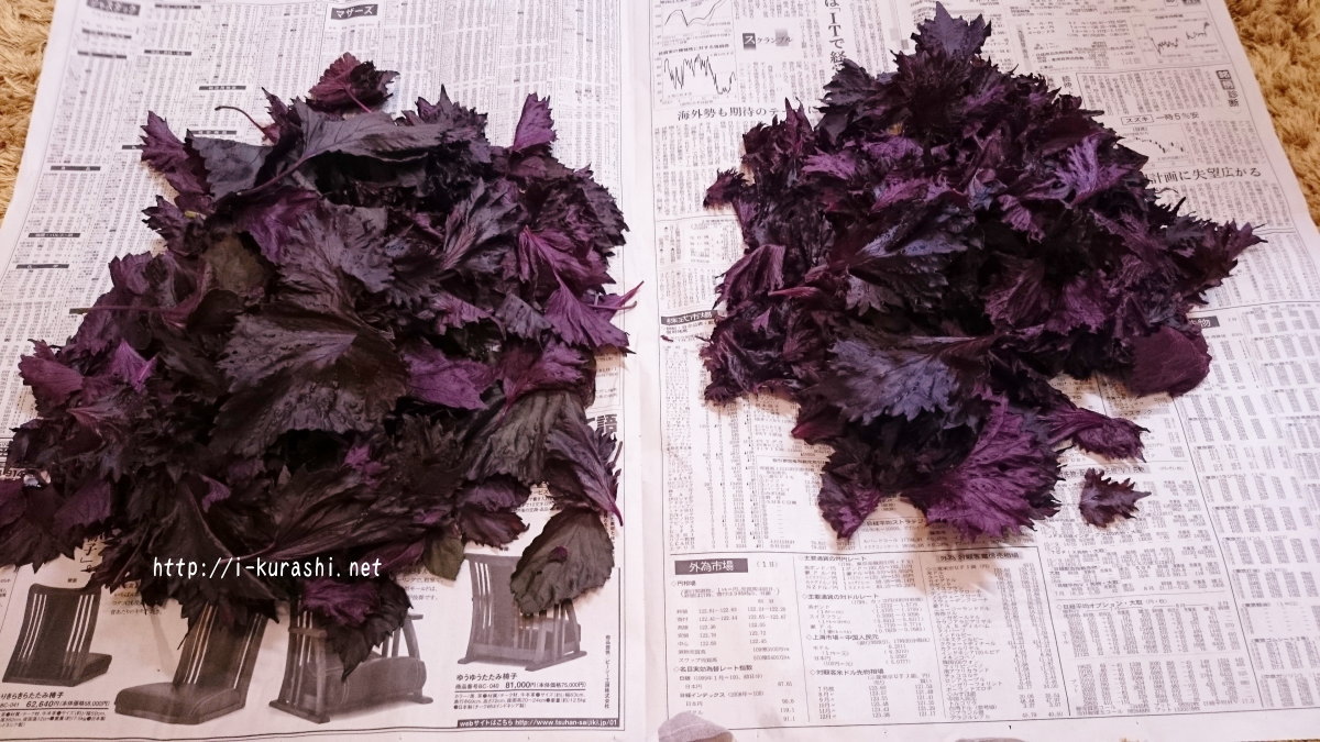 赤紫蘇の葉はキレイに洗って、自然乾燥させます。