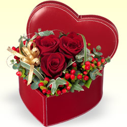 たとえば、赤バラのハートボックスアレンジメントなんていかがですか?